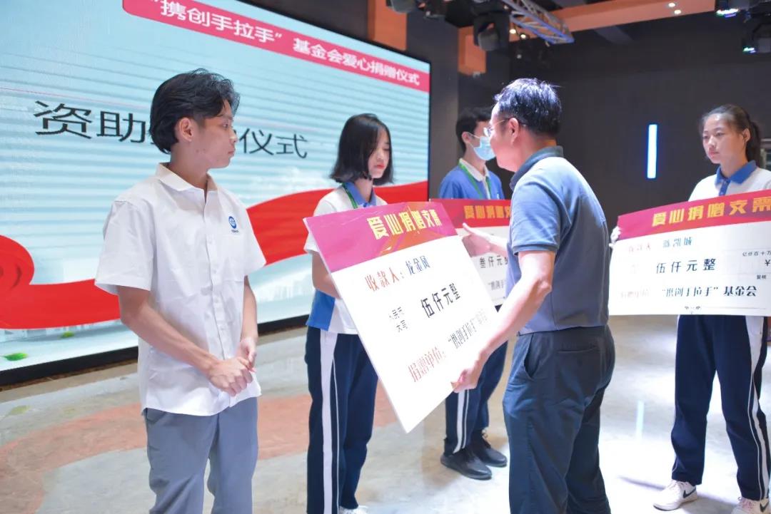 会上首先由校长助理谢显慈宣读了《关于发放携创高级技工学校"手拉手"基金爱心助学金的决定》,今年"携创手拉手"基金将拿出13000元用于资助3名家庭贫困但在校表现优异的"深桂雨露直通车"学子。