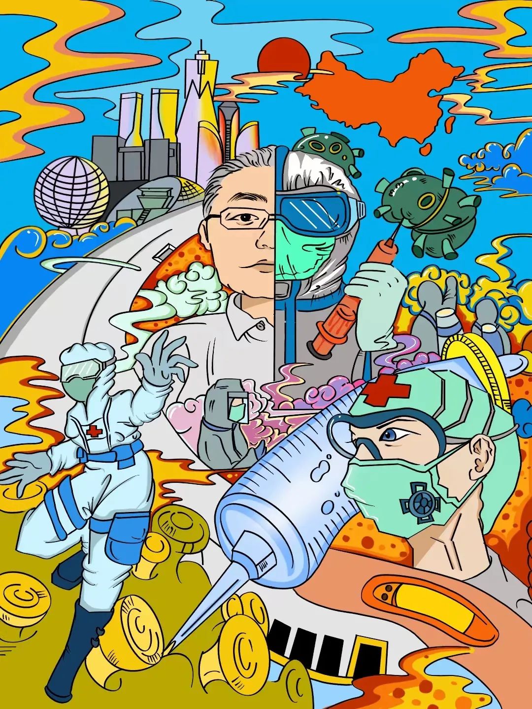 创意来源为每日测核酸时的咽拭子与防疫工作人员,大医精诚,大爱无垠。面对突如其来的新冠肺炎疫情,广大医护工作者不忘初心、牢记使命。在这场疫情的艰苦斗争中,冲锋在前。他们是这个时代最可爱的人。