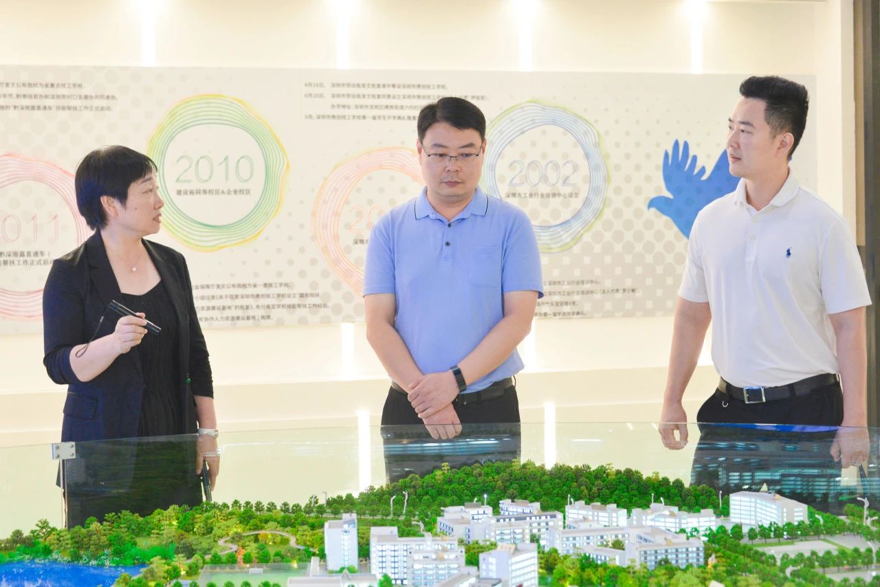 近日,深圳中华职业教育社刘榴秘书长,邓飚副秘书长一行来到深圳市携创高级技工学校调研考察,深圳市携创高级技工学校党委书记、校长伊俊宏陪同调研。