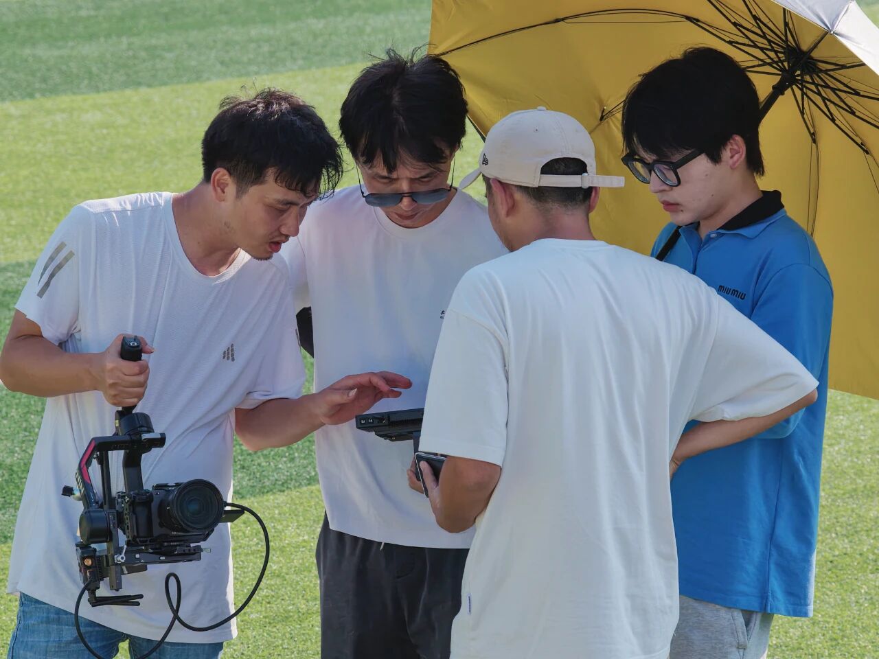正式拍摄环节更是让同学们直呼“过瘾”。从演员的动作指导、台词衔接,到镜头的推拉摇移、画面构图,企业团队将多年的行业经验倾囊相授。此次拍摄也被视为“湾浪潮青年电影人计划”在校园的一次微型实训,部分同学还获得了上手实操的机会,在导师的指导下尝试调整摄像机参数、协助灯光布置,亲身感受广告拍摄的节奏与细节。