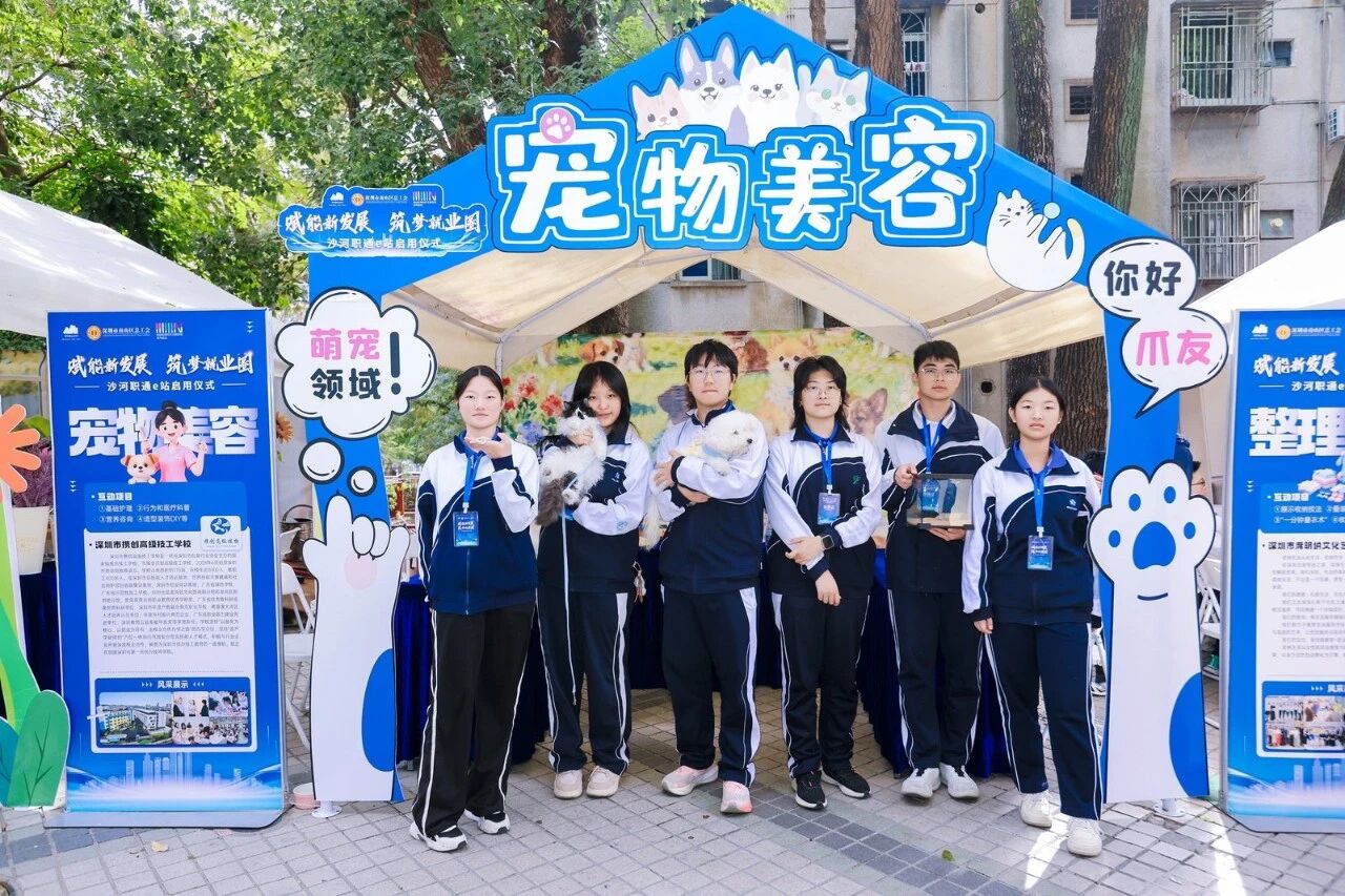 在南山区人力资源局、总工会等单位联合主办的“赋能新发展,筑梦就业圈”沙河职通e站焕新启用仪式上,深圳市携创高级技工学校宠物医疗与护理专业的师生团队成为现场一道亮丽的风景线。由两名骨干教师带领的6名学子,将课堂搬进社区,以一场“沉浸式”的宠物服务体验,生动诠释了技工教育的独特魅力与社会价值。