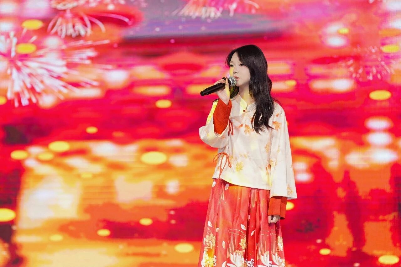 晚会尾声,全体演职人员共唱《难忘今宵》,由樊立戴、吴建坤、肖恩乔、潘莹瑶四位师生领唱,为2025年画上温暖句点。随后,绚丽的跨年烟花秀点亮校园夜空,五彩斑斓的烟花映照着一张张笑脸,师生在欢呼与祝福中共同迎接2026年的到来。