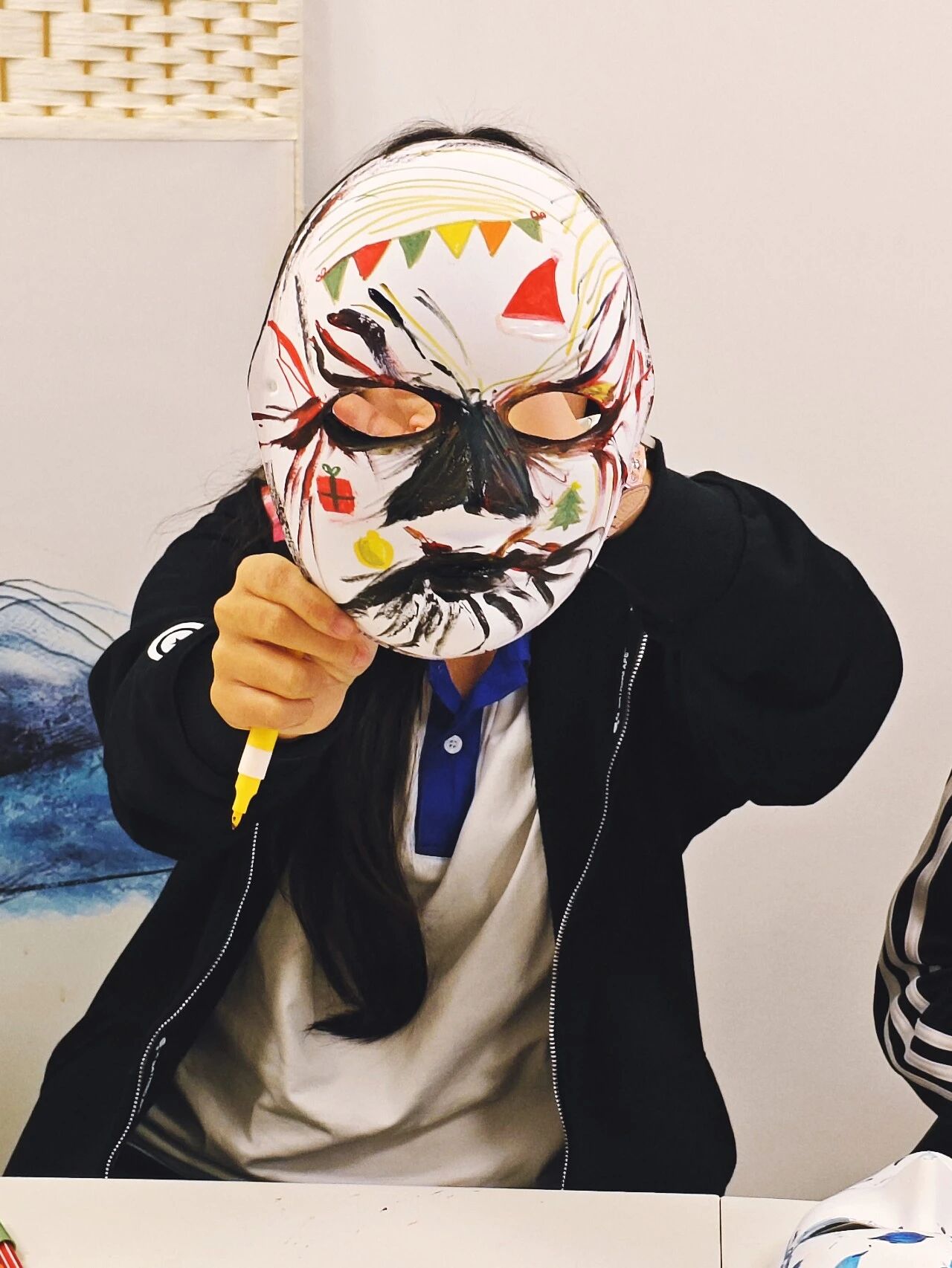 首场活动中,李翠老师以荣格“人格面具”理论为引,引导同学们思考“他人眼中的我”与“真实的我”。空白面具与彩笔成为情感表达的窗口,同学们用画笔勾勒内心的感受、性格或多面自我。分享环节中,真诚的对话拉近了彼此的距离:“原来不止我这样”“接纳所有面向,才是完整的我”。活动不仅让同学们学会悦纳自我,更在倾听中收获了集体的理解与支持。