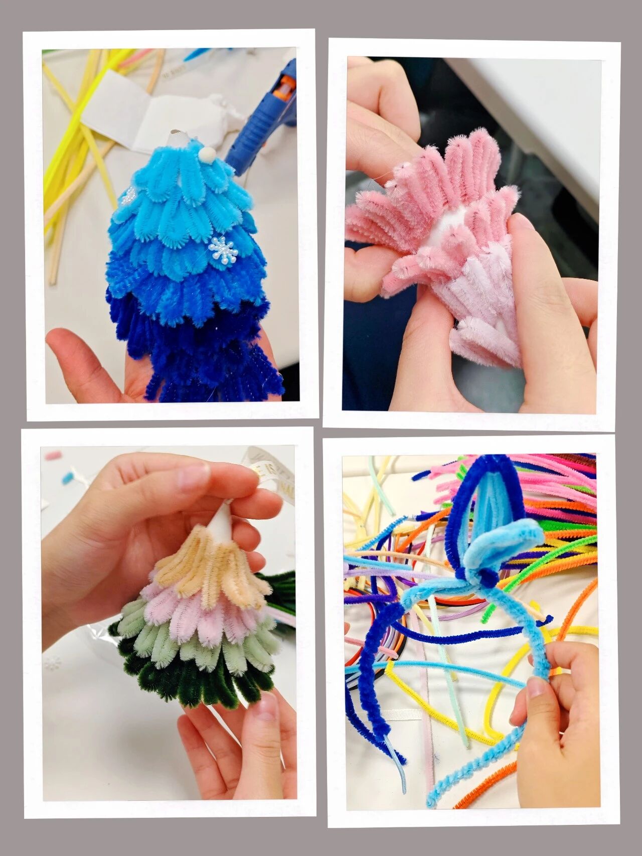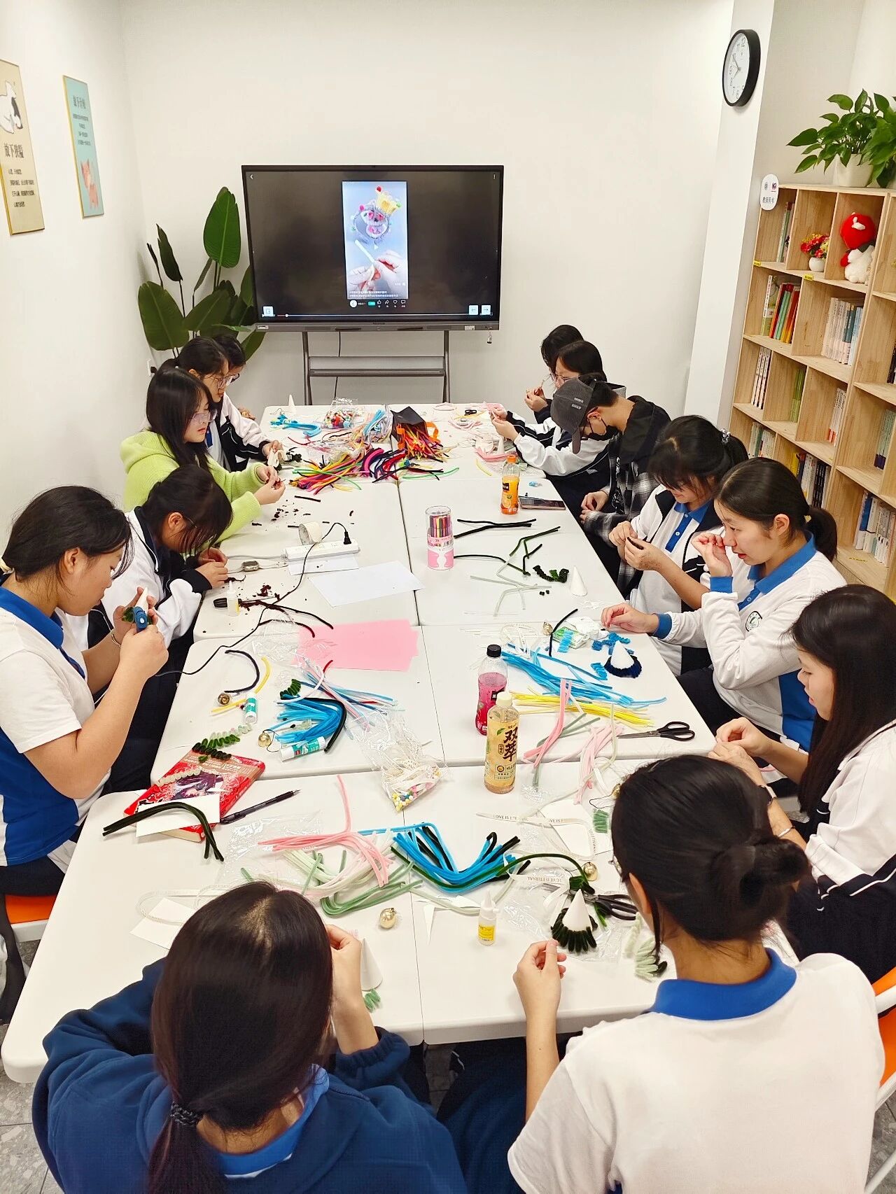 第三场活动中,扭扭棒、毛球等材料化身正念媒介。李翠老师轻语引导:“专注当下,把烦恼‘扭’走,将快乐‘编’进作品。”同学们沉浸于手工的“心流”体验,创作出灵动的小动物、精美挂饰,也在指尖流转间收获了内心的平静。活动结束后,有同学分享:“专注手工时,压力仿佛消失了,成就感满满。”每一件作品不仅是创意结晶,更是一份治愈心灵的见证。