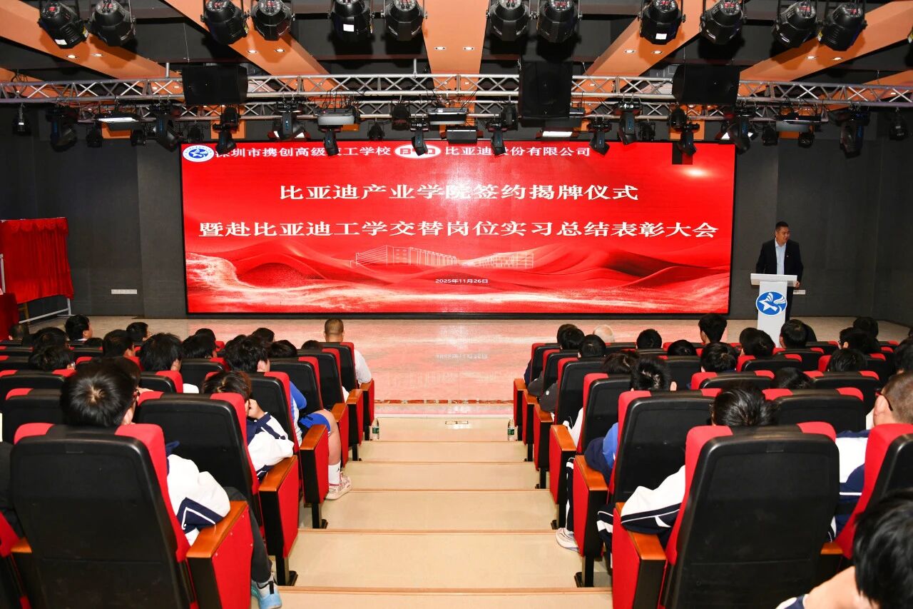 此次活动不仅展现了深圳技工教育“聚焦产业、服务发展”的鲜明特色,更凸显了技能人才在推动实体经济转型升级中的核心价值。随着比亚迪产业学院的落地,深圳市携创高级技工学校在深化产教融合、赋能战略性新兴产业发展方面再次迈出坚实一步。