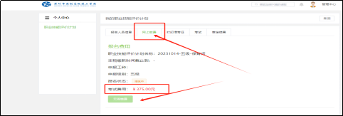 注意:考生必须通过报名平台点击“个人中心”进行缴费。交费前,请确认已在广东政务服务网用报名码完成实名认证,务必用报名码按时完成 实名认证,否则无法参加考试。