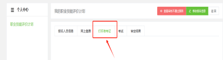 进入个人中心,点击对应的考试计划,点击打印准考证即可打印。