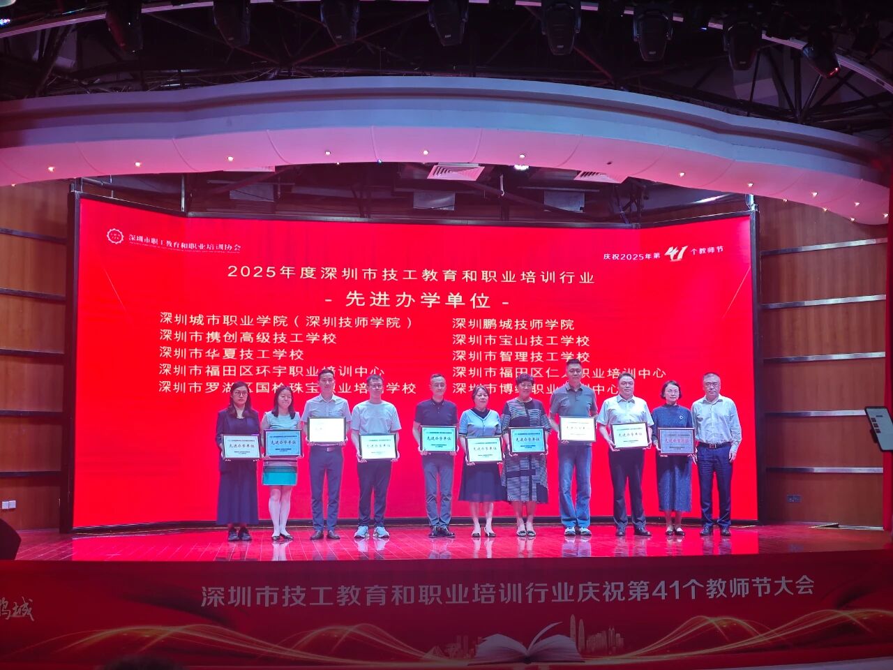 近日,由深圳市人力资源和社会保障局指导、深圳市职工教育和职业培训协会主办的“2025年度深圳市技工教育和职业培训行业教师节表彰大会”隆重召开。深圳市携创高级技工学校凭借扎实的办学成效和优秀的师资队伍建设,第八次荣膺“先进办学单位”称号;学校4位教师荣获“先进个人”等多项个人荣誉,成为本届表彰中的亮点单位之一。